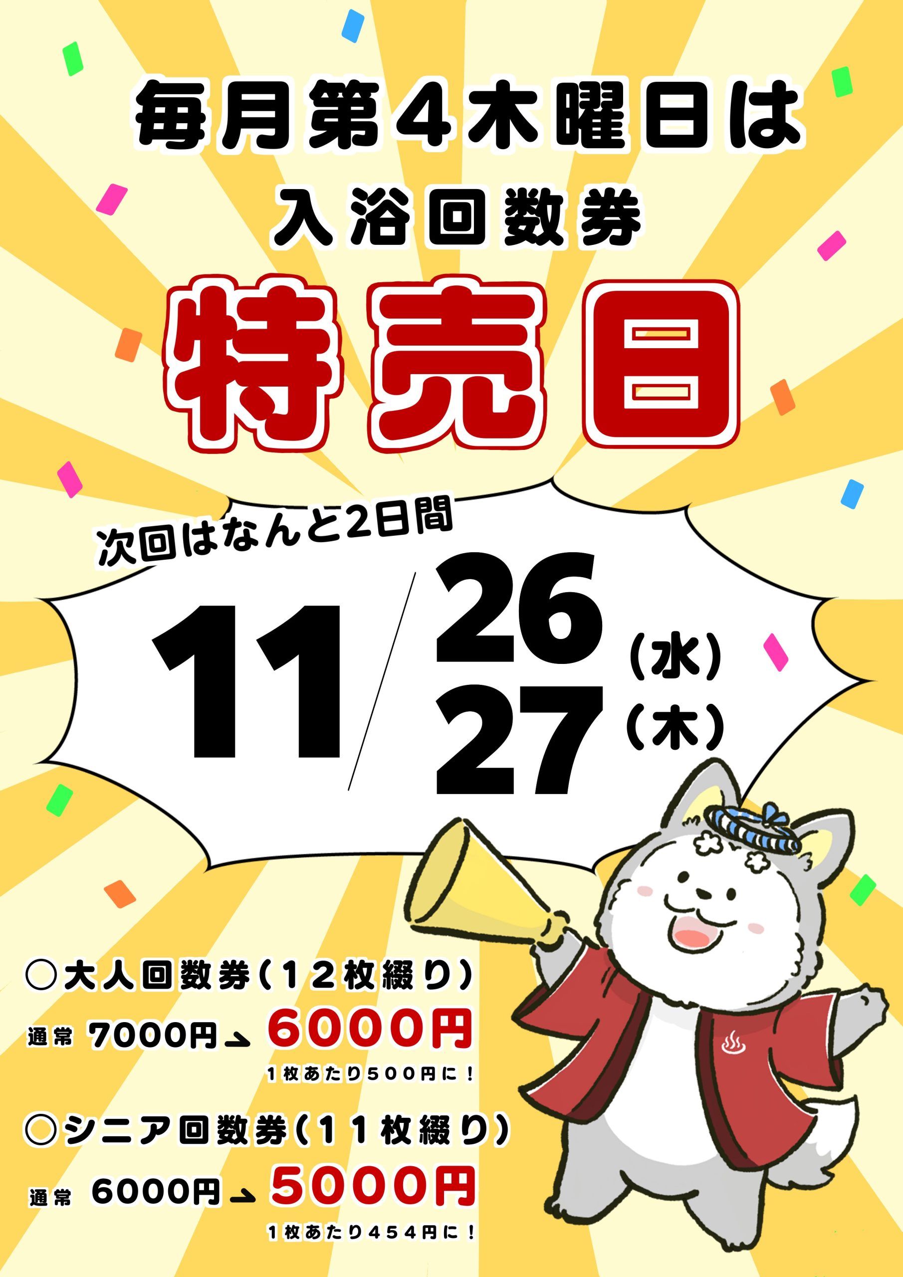 今月11月は、なんと‼️回数券の特売日が特別に【2日間】もあるスペシャル月間‼️